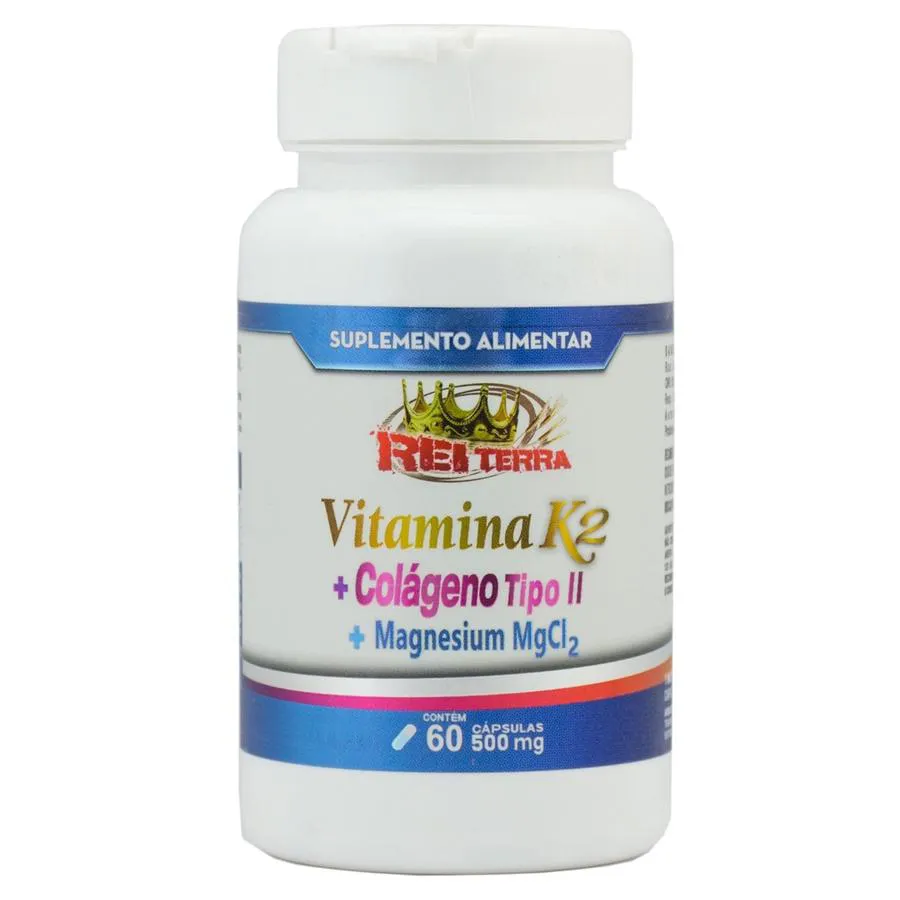 VITAMINA K2+COLáGENO TIPO II + MAGNESIUM MGCI2 60 CáPSULAS - REI TERRA - AJUDA NA COAGULAçãO SANGUíNEA E TAMBéM CONTRIBU SEM Sabor