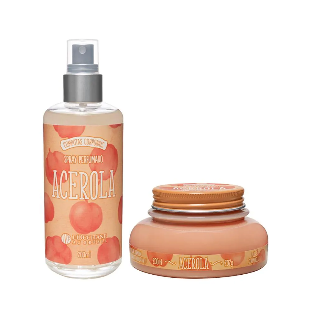 Kit L'Occitane Compotas Corporais Desodorante Corporal Acerola 200ml + Desodorante e Hidratante Corporal Creme Acerola 202g