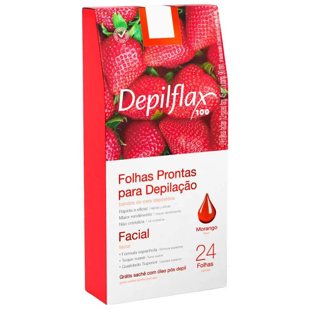 FOLHAS PRONTAS FACIAIS DEPILFLAX MORANGO C/ 24 UND