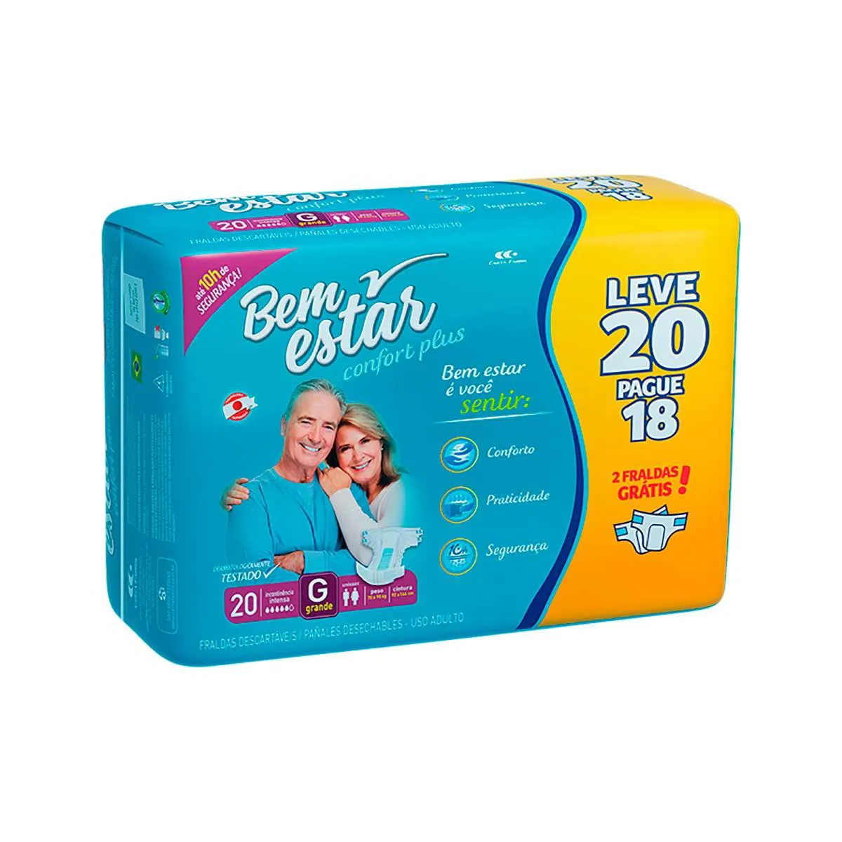 Fralda Geriátrica Unissex Bem Estar Confort Plus G Absorção Intensa 20 unidades