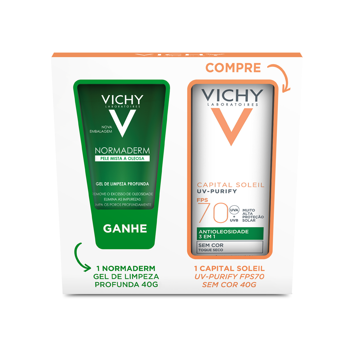 Kit Vichy Protetor Solar Facial Idéal Soleil UV-Purify FPS 70 40g + Gel de Limpeza Profunda Normaderm 40g