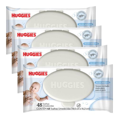 Kit Lenço Umedecido Infantil Huggies Recém Nascido Sem Fragrância 4 Pacotes com 48 Unidades