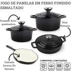 Jogo De Panelas 4 Peças Ferro Fundido Esmaltado Indução Gás Conjunto Caçarola Frigideira - PRETO