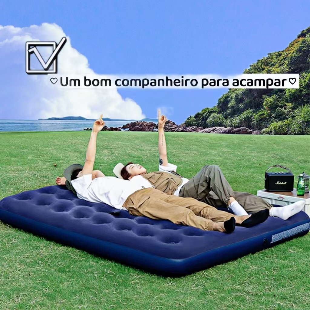 Colchão Inflável de Casal SUPORTA 300KG Resistente Aveludado Portátil+ Bomba Manual de Ar Inclusa Camping Praia Multiuso