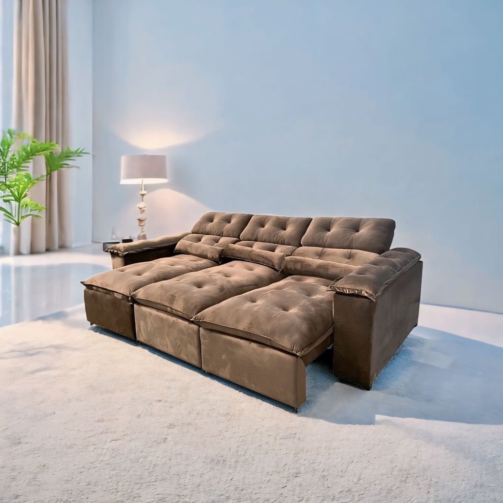 Sofá Retrátil e Reclinável Ipanema com 2,75m de Largura e 1,60m de Abertura em Tecido Veludão C/ 06 Lugares e Montagem Inclusa