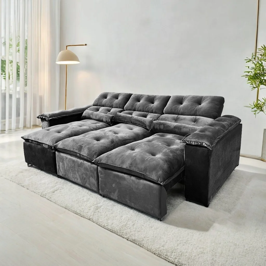 Sofá Retrátil e Reclinável 2,30m em Tecido Veludo C/ Pillow nos Braços e Molas Ensacadas Bonel/D33