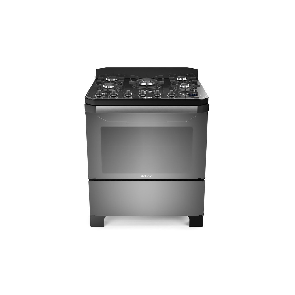 Fogão 5 Bocas Tripla Chama Mesa De Vidro Timer Digital Bivolt Automático Itamaster Itatiaia Prata