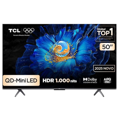 Smart TV 50" TCL C6KS 4K QD-Mini LED com Sistema Operacional Google TV, Dolby Vision, Atmos, HDR10+, ALLM, HDMI 2.1 e Comando de voz