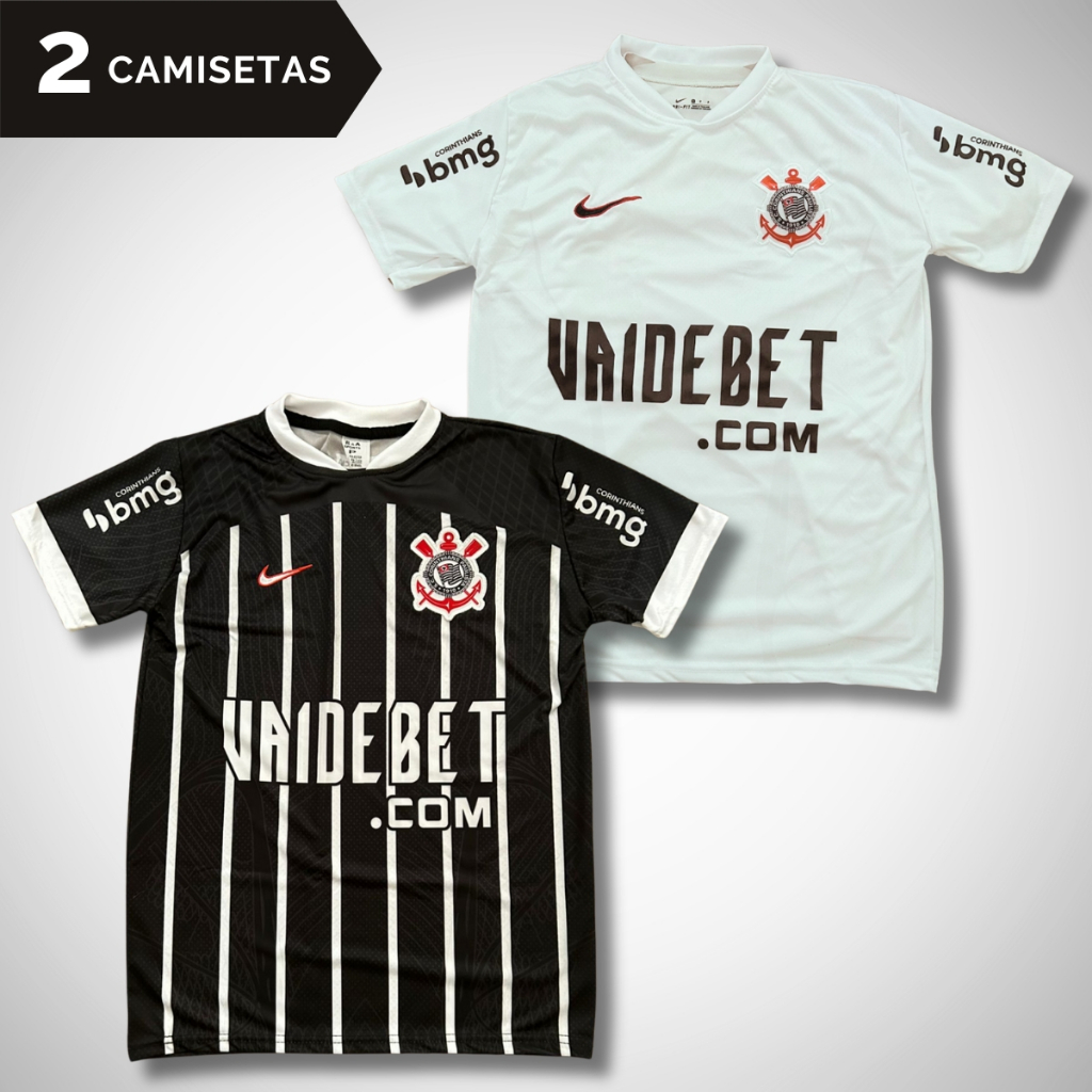 KIT TIMÃO - 2 Camisas Corinthians 2024 - Branca e Preta Atualizada Camiseta Nova - Envio Rápido Em Estoque