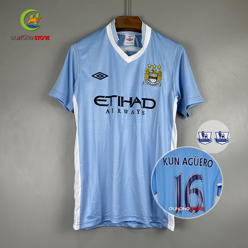 11-12 Manchester City Retro Jersey Home Competição Azul Treinamento Uniforme Equipe Personalizada Uniforme Camisa de Suor Secagem Rápida Roupas