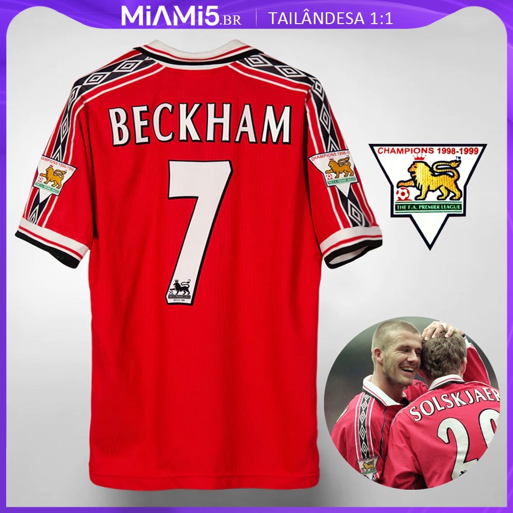 1998 1999 Camisa Retro Manchester United Football Beckham Nome E Número Personalizados