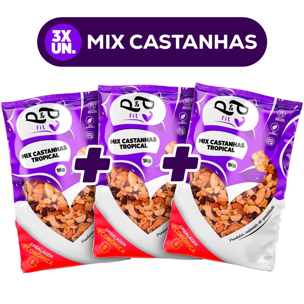 Mix Castanha Tropical Dieta Saudável 3Kg - Castanha de Caju, Nozes, Amendoa, Castanha do Pará, Amendoim, Uva Passa