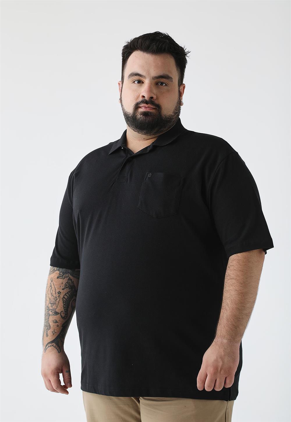 Polo Manga Curta com Bolso Comfort Piquet - Preto