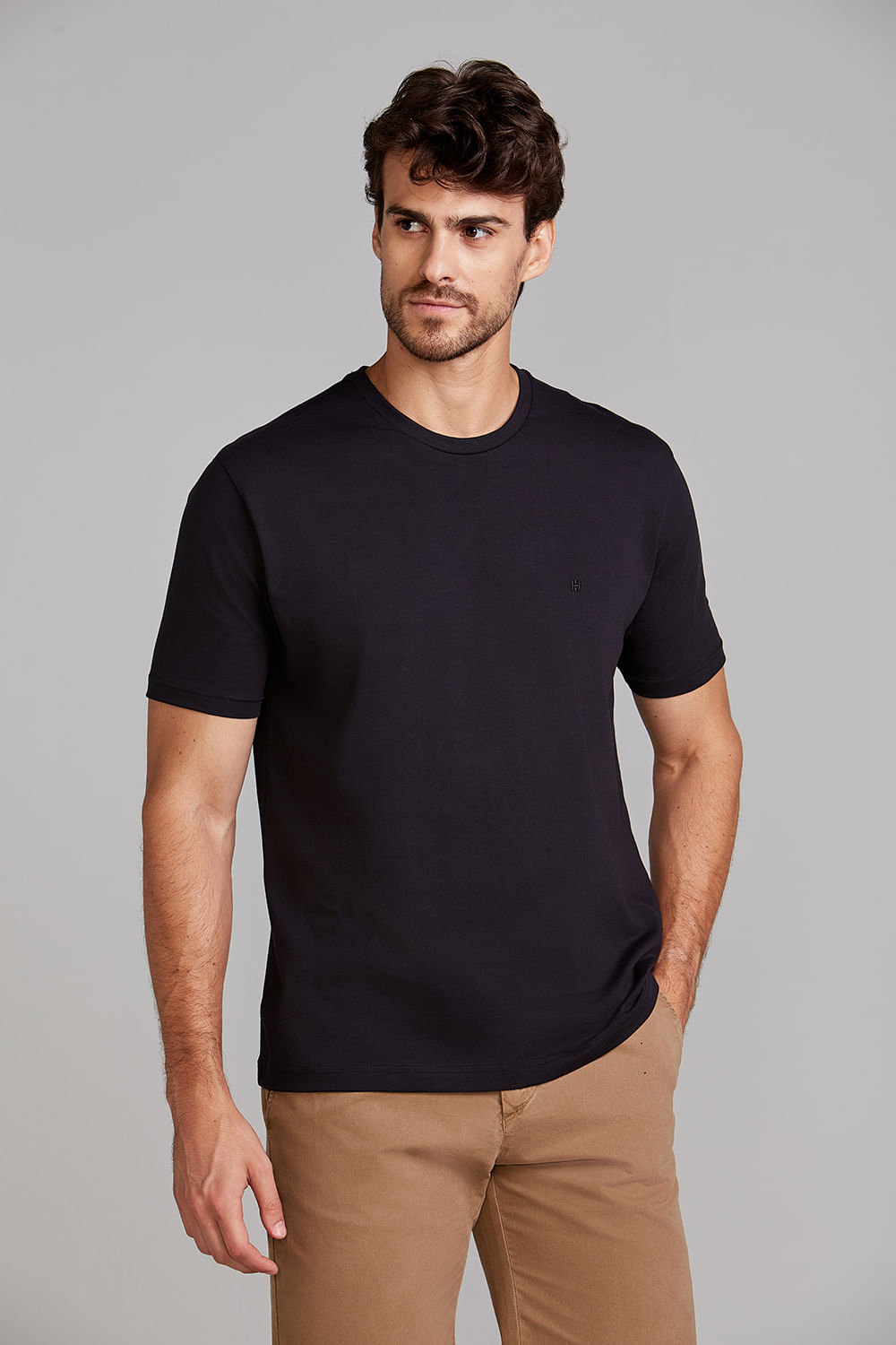 Camiseta Manga Curta Malha Básica Slim Fit - Preto
