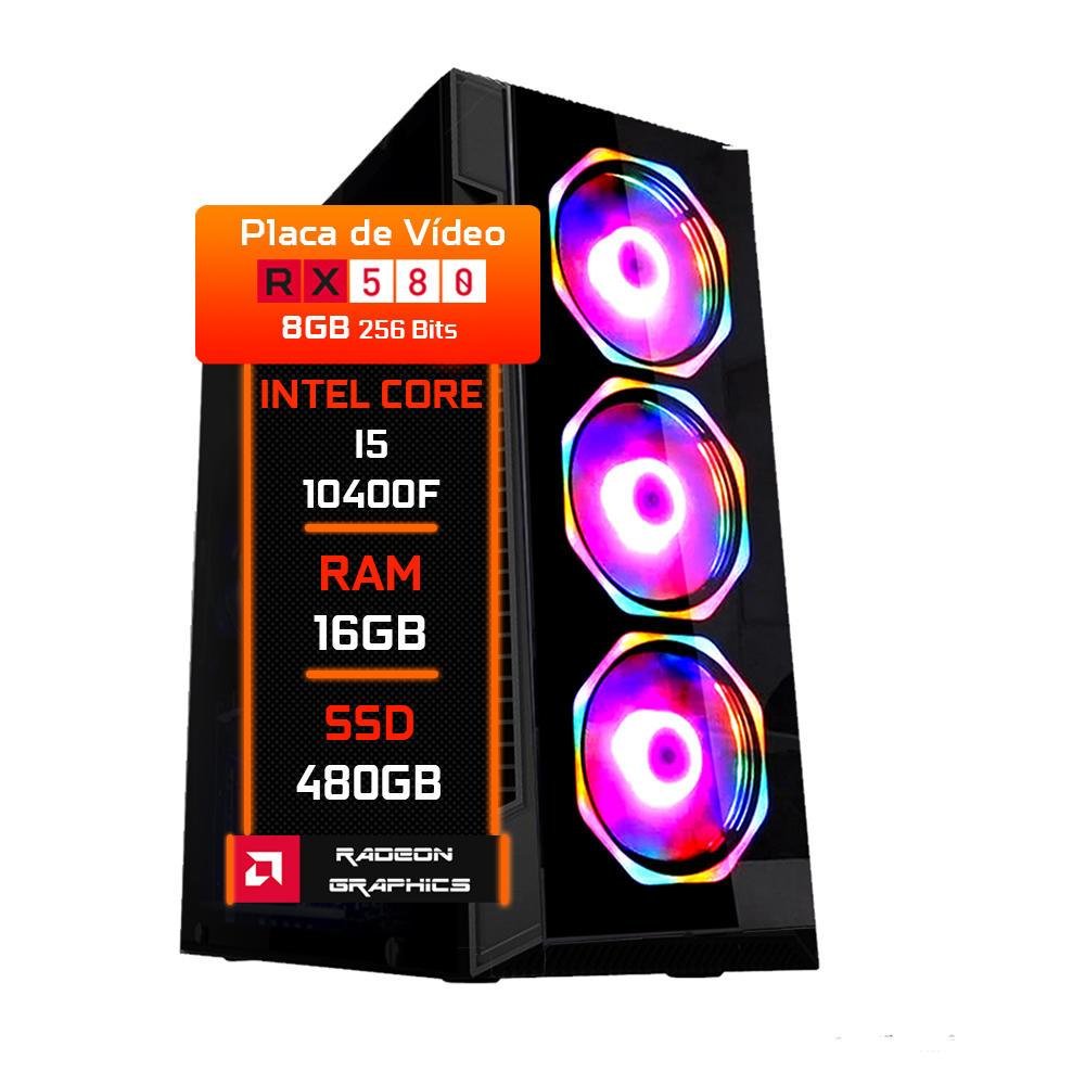 Pc Gamer Fácil Intel Core I5-10400f 10ª Geração, 16gb Ddr4, Amd Rx 580 8gb, Ssd 480gb - Fonte 750w