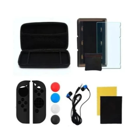 Kit 13 Em 1 Acessórios Diversos Compatível Nintendo Switch Fone Estojo Película Vidro Case 4 Grips
