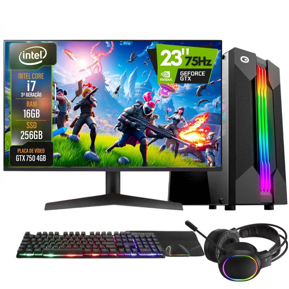 PC Gamer Completo 2eletro Player, Intel Core I7, 16gb Ram, Placa De Vídeo Geforce 4gb, SSD 256gb, Fonte 500w, Monitor 23" Full Hd 75hz, Kit Gamer Com Headset - Pg2e-LED1009pl
