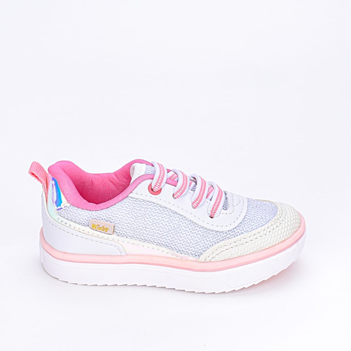 Tênis Casual Infantil Feminino Kidy Happy Branco Rosa