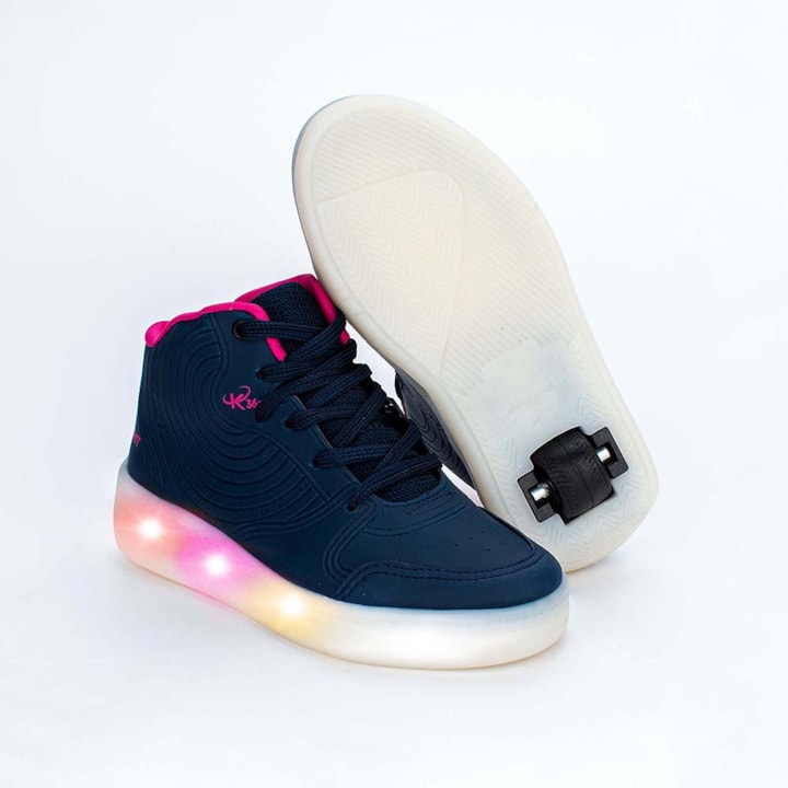 Tênis de Rodinha com Led Marinho e Pink Kidy