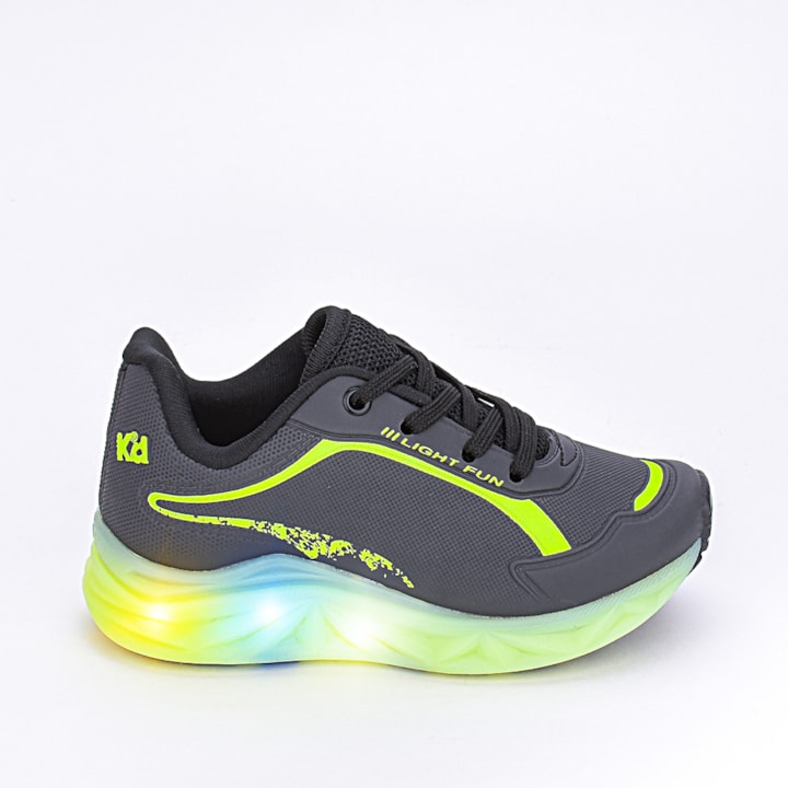 Tênis Infantil Led Kidy Light Fun Grafite Amarelo Neon