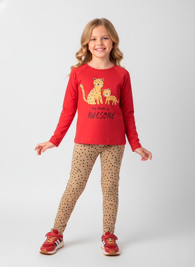 Conjunto Infantil Menina Meia Estação Onça Vermelho 0135 - Laluna