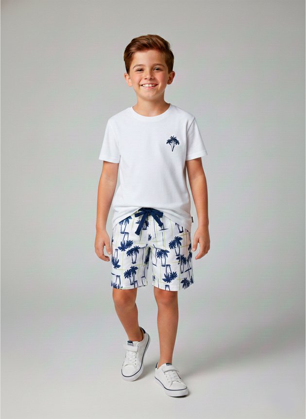Conjunto Infantil Menino Básico Coqueiros Branco 0176 - Keki Boys