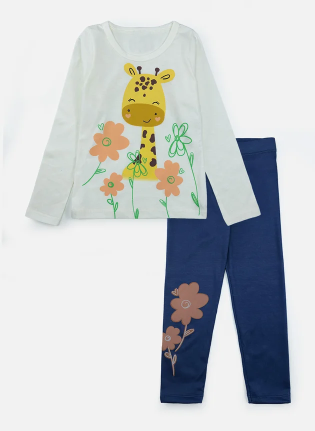 Conjunto Infantil Menina Meia Estação Girafa Creme 0595 - Laluna
