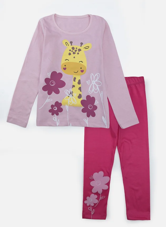 Conjunto Infantil Menina Meia Estação Girafa Rosa 0595 - Laluna