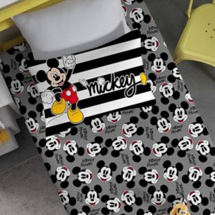 Jogo de Cama Portallar Solteiro Mickey Preto/Branco Malha Mista Disney 2 Pçs Cinza