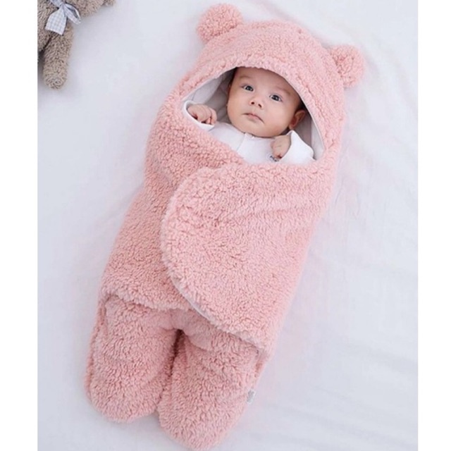Saco de Dormir Bebe Ursinho com Sherpa Inverno Menina e Menino Charutinho Enrolar o Bebe | 2 CORES