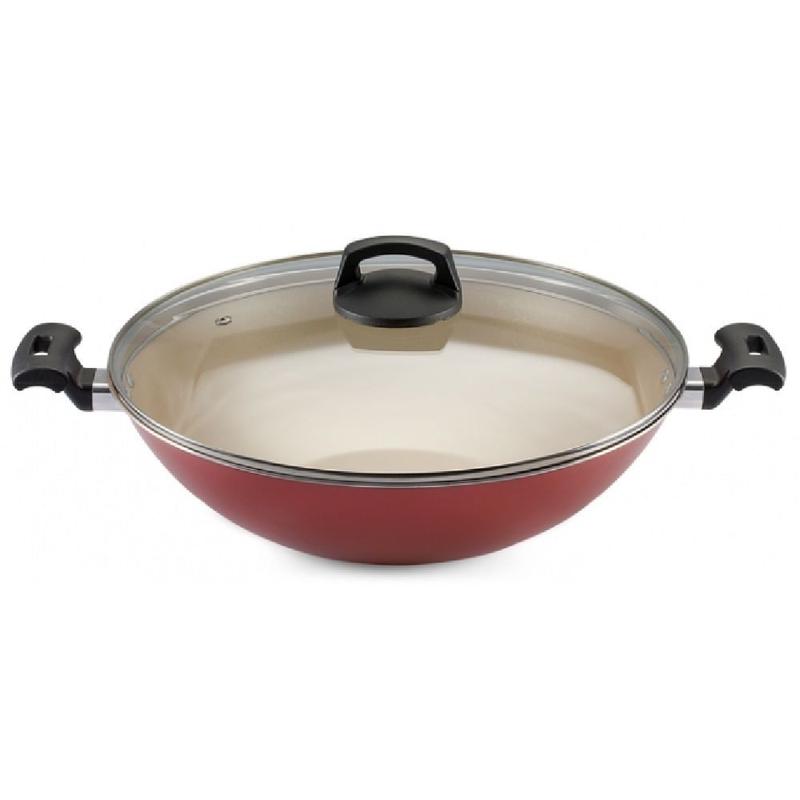 Panela Wok Tramontina Paris Antiaderente Tampa de Vidro 32cm 4,4 L com Colher Vermelha
