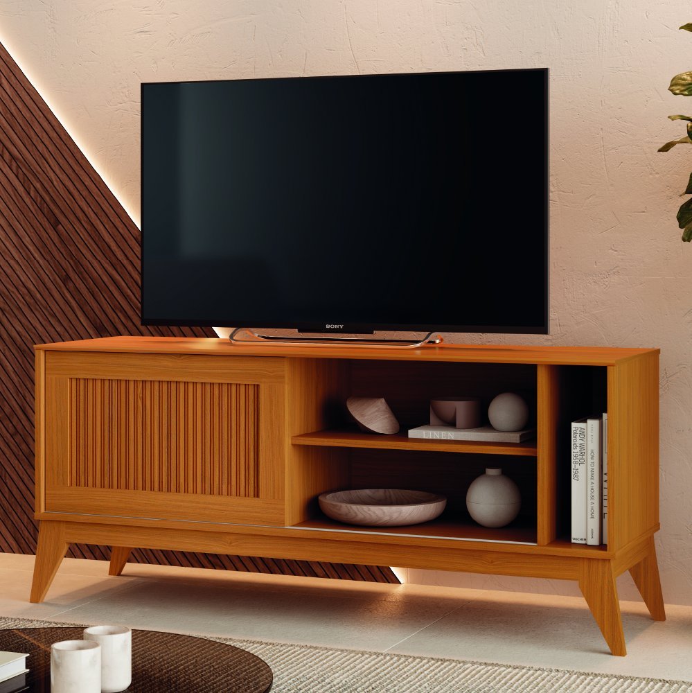 Rack Bancada para TV até 55 Polegadas 1,36m Ripado Impressão 3D 1 Porta Cedro Aruba EDN