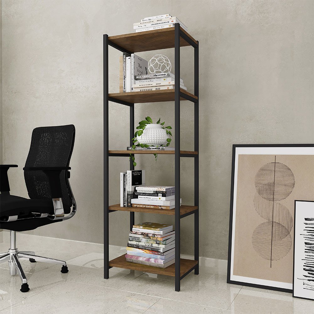 Estante para Livros em Aço e Mdp Industrial 5 Prateleiras Porto Espresso Móveis