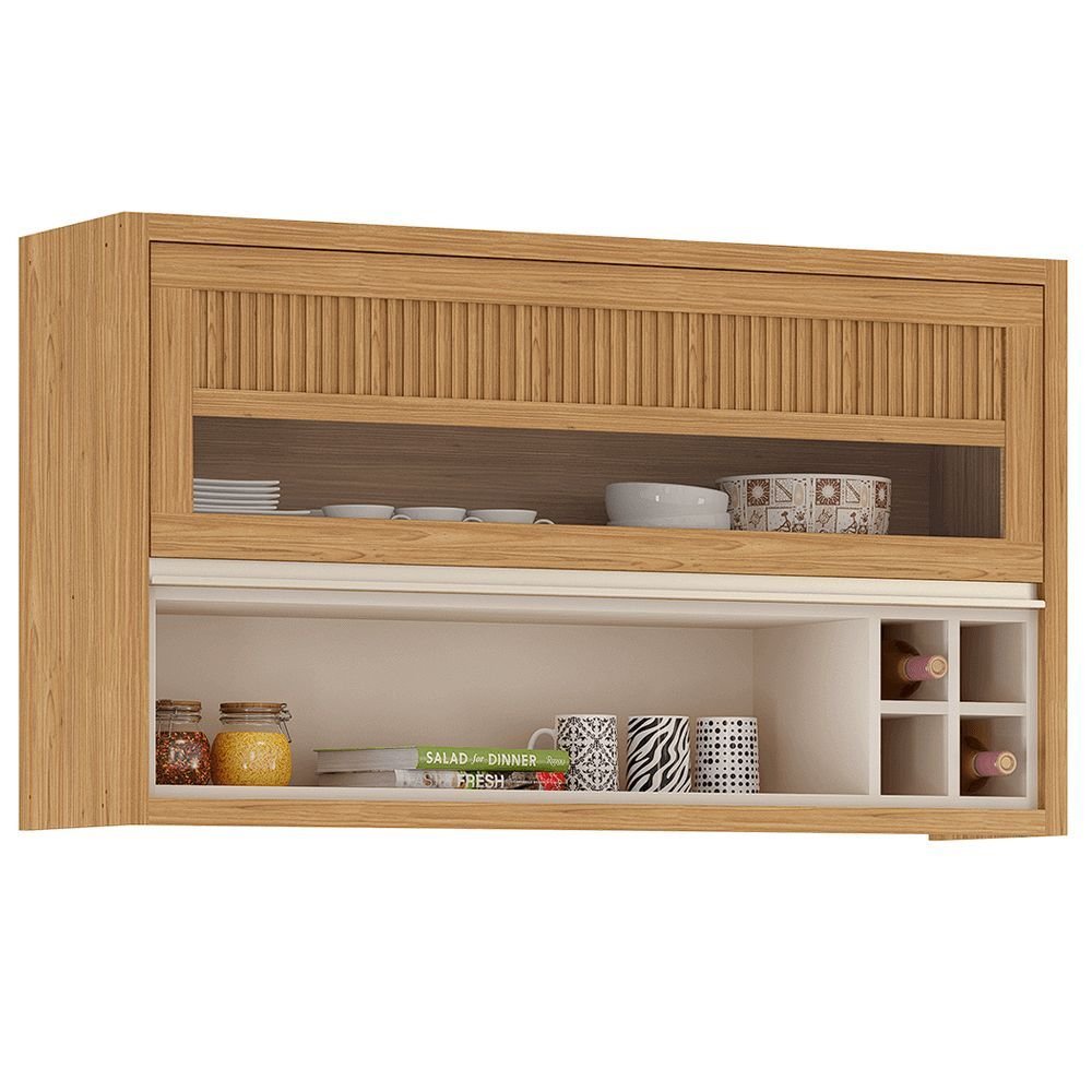 Armário 120cm 1 Porta Horizontal com Vidro, Nicho e Garrafeiro MDF Lisboa Itatiaia