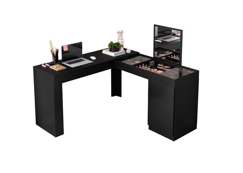 Penteadeira/escrivaninha de Canto Luna C/espelho Preto Fosco - Belaflex
