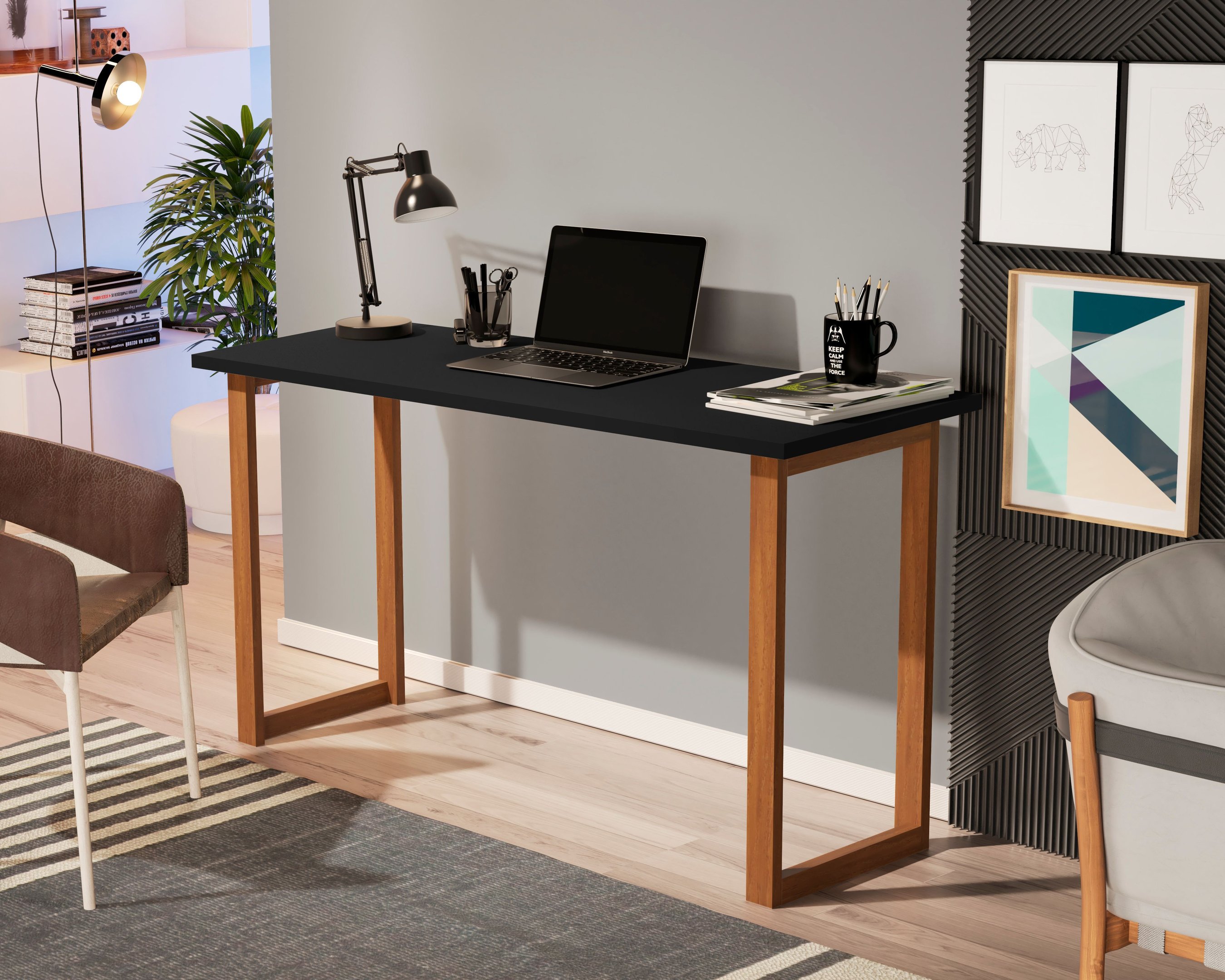 Mesa de Estudo 76 Cm Tampo Mdf Pés em Madeira Quarto e Escritório Estudo Trabalho Notebook Cor Preto