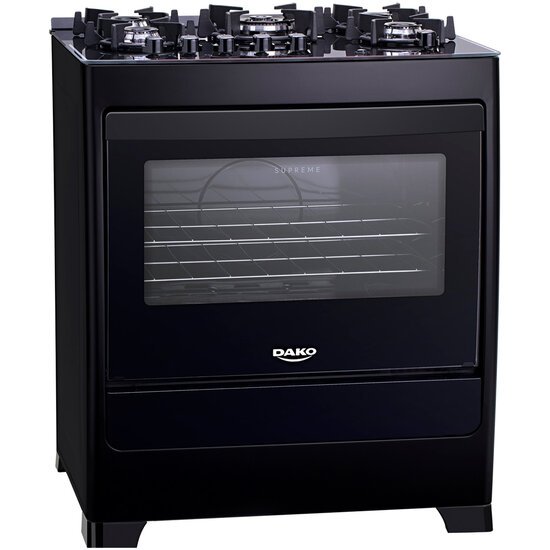Fogão a Gás de Piso 5 Bocas Dako Supreme Glass, Mesa de Vidro, Preto