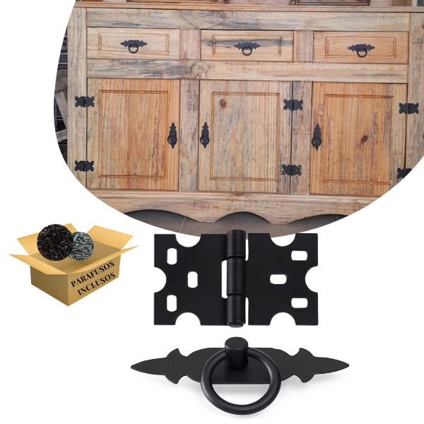 Kit 4 Puxadores 10 Dobradiças Mexicana Colonial Rústico