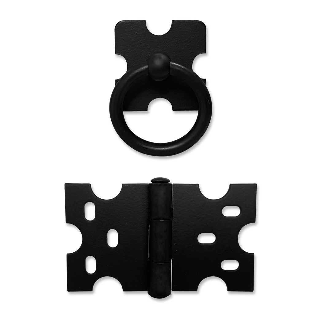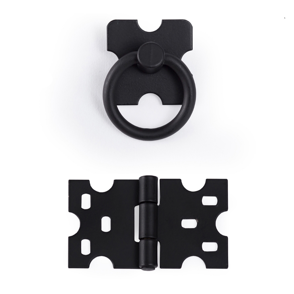 Kit 2 dobradiças mexicana e 1 puxador argola preto fosco