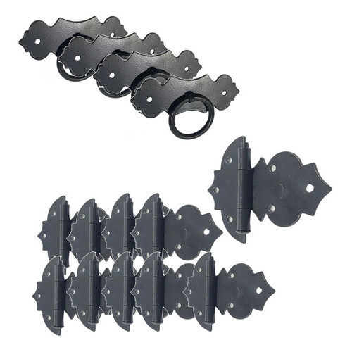Kit 12 Unidades 8 Dobradiças Mexicana Colonial + 4 Puxadores Rústicos Preto