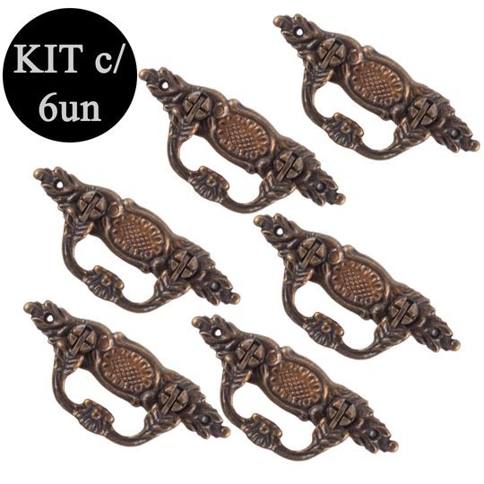 KIT 6 PUXADORES p/ MÓVEIS GAVETAS E ARMARIOS ALÇA COLONIAL mod. PZ 09