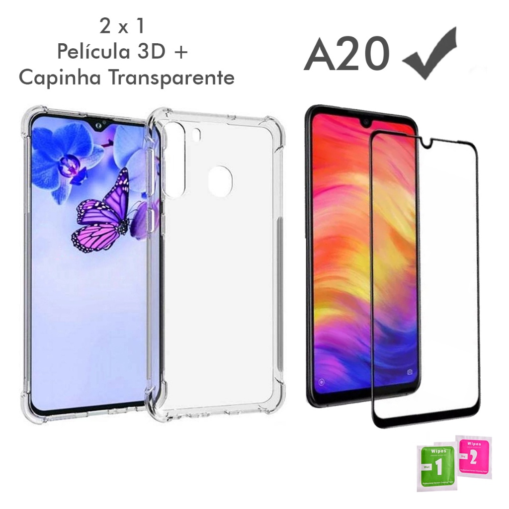 Capa Transparente Capa Case Capinha Anti Shock transparente Samsung Galaxy A20 + Película Vidro 3D