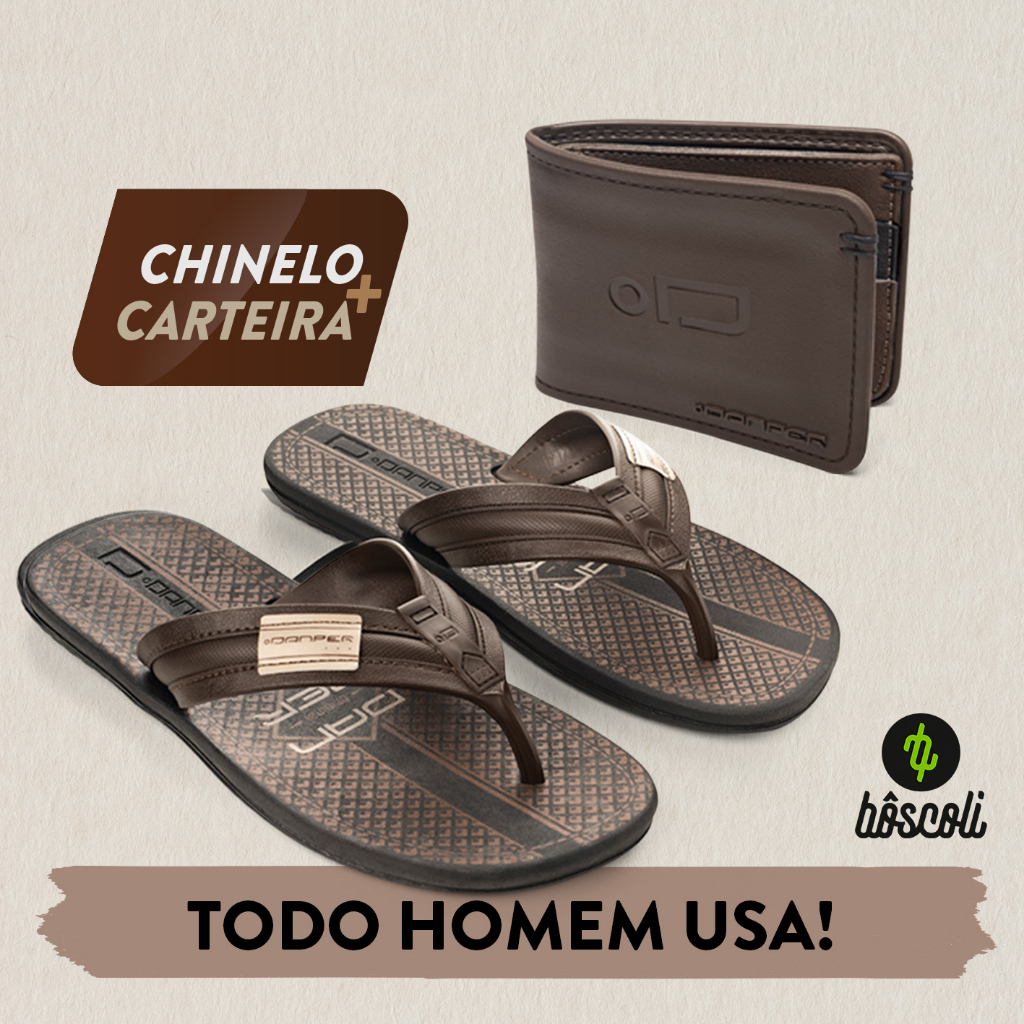 Kit Chinelo de Dedo Sandalia + Carteira Danper Original Adulto Masculino Macio Confortavel Dia dos Pais