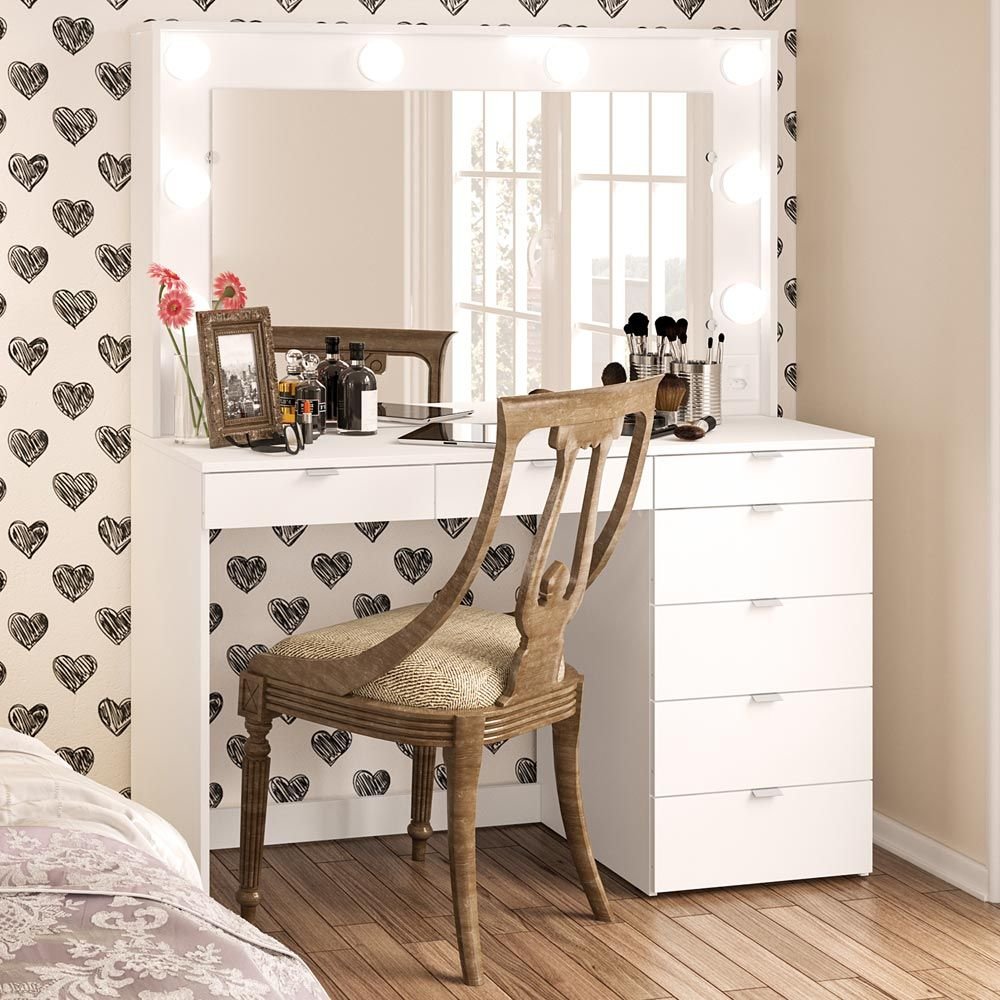 Penteadeira Camarim Las Vegas Para 8 Lâmpadas 7 Gavetas Branco Politorno
