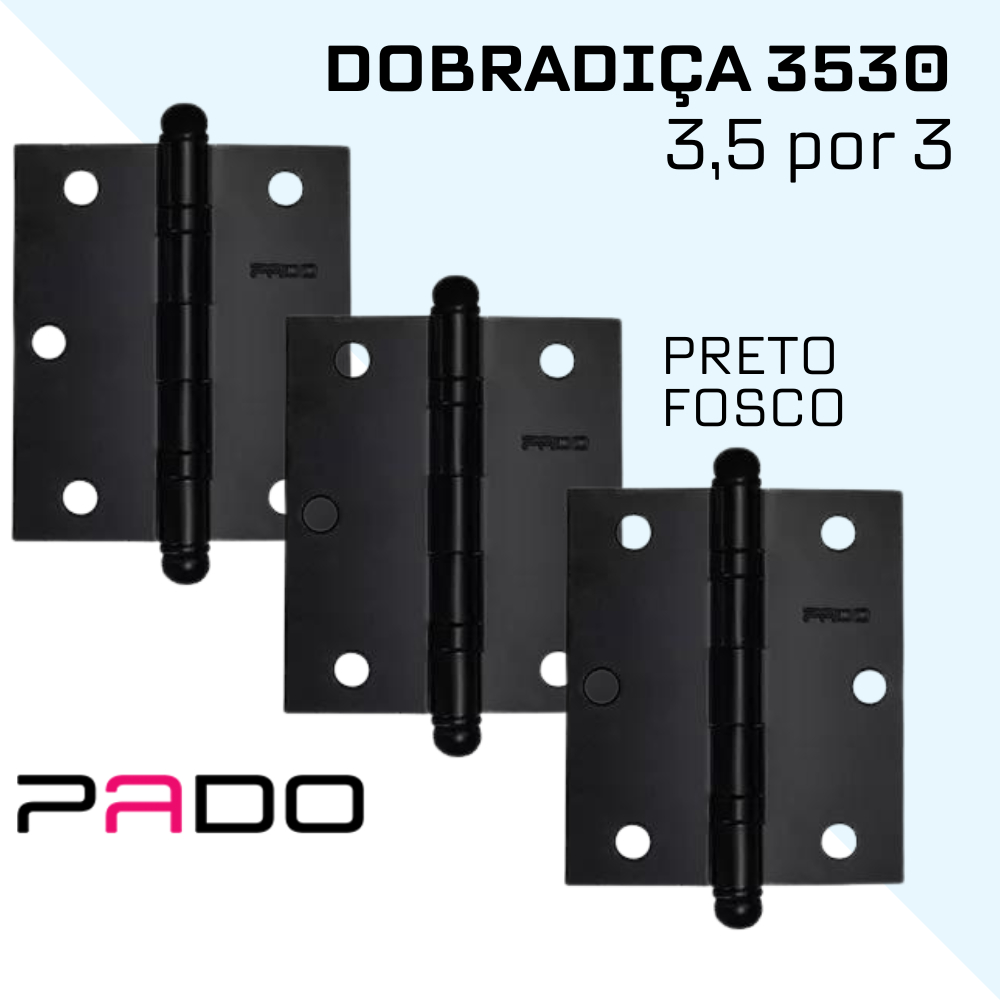 Dobradiça Para Portas de Madeira Rolamento Pado 3530 3,5x3 Kit C/ 3Pçs Preto Fosco