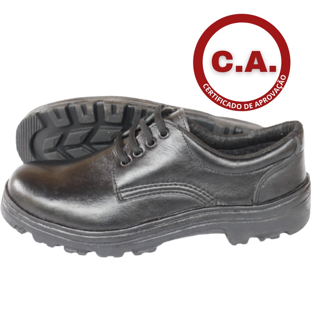 Sapato Segurança Couro com Certificação C.A Cano Baixo Colado e Blaqueado