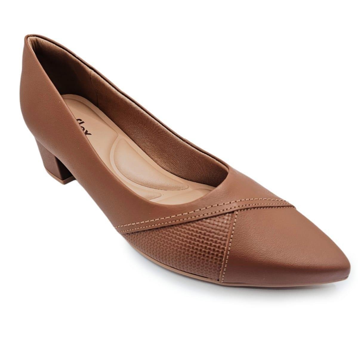 Scarpin Usaflex Feminino Salto Bloco Couro Confort