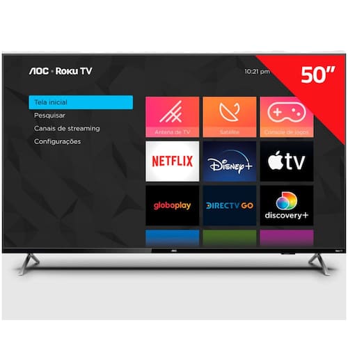 Smart Tv Aoc Roku Led 50 Polegadas 4k Uhd Wi-fi 50u6125/78g