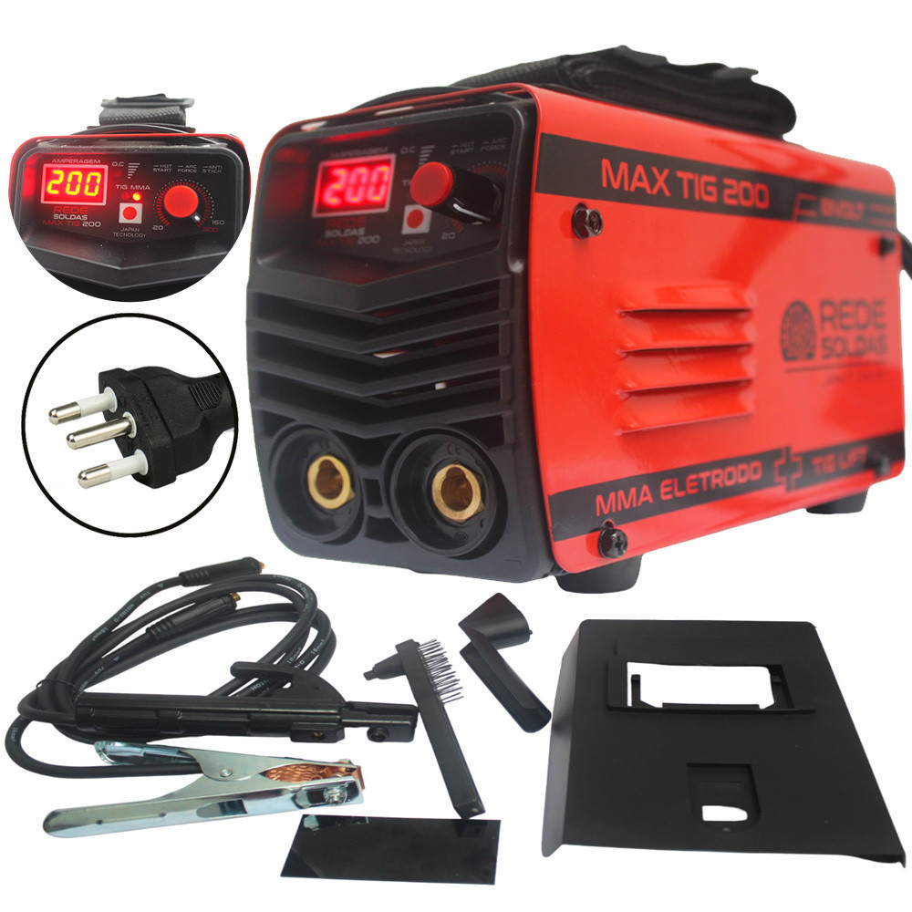 Inversor Aparelho Maquina de Solda Max Tig Eletrodo 200 Amperes Bivolt 110/220V Com Máscara Rede Soldas