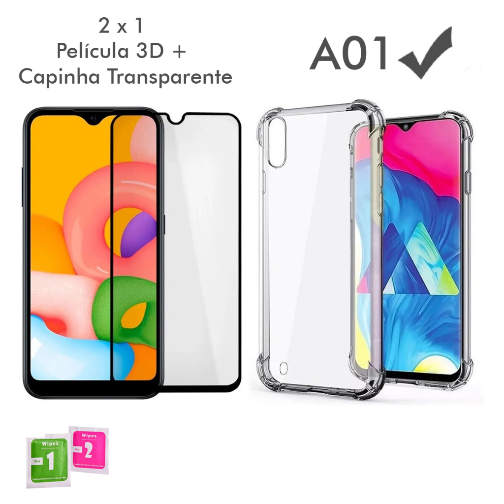 Capa Capinha Case Samsung Galaxy A01 Core Anti Shock + Película 3D 5D 9D Blindada Cobre 100% Da Tela Borda Resistente